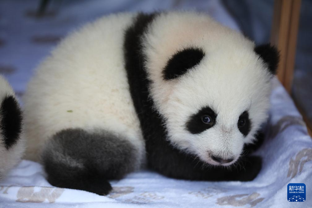 德国柏林动物园6日为在该园出身满百天的一双大熊猫双胞胎举行官方定名典礼,两只雌性幼崽分辩得名“梦好”和“梦甜”。