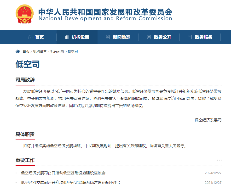 三里河防护到,国度发展改造委网站公开了低空经济发展司具体使命等信息。